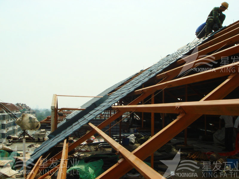一、施工簡單方便:相比過去使用的小青瓦或水泥瓦,樹脂瓦的施工過程更加簡單方便。只需將舊瓦片拆除,修復原有屋頂,節(jié)省了人工成本。